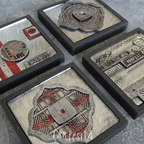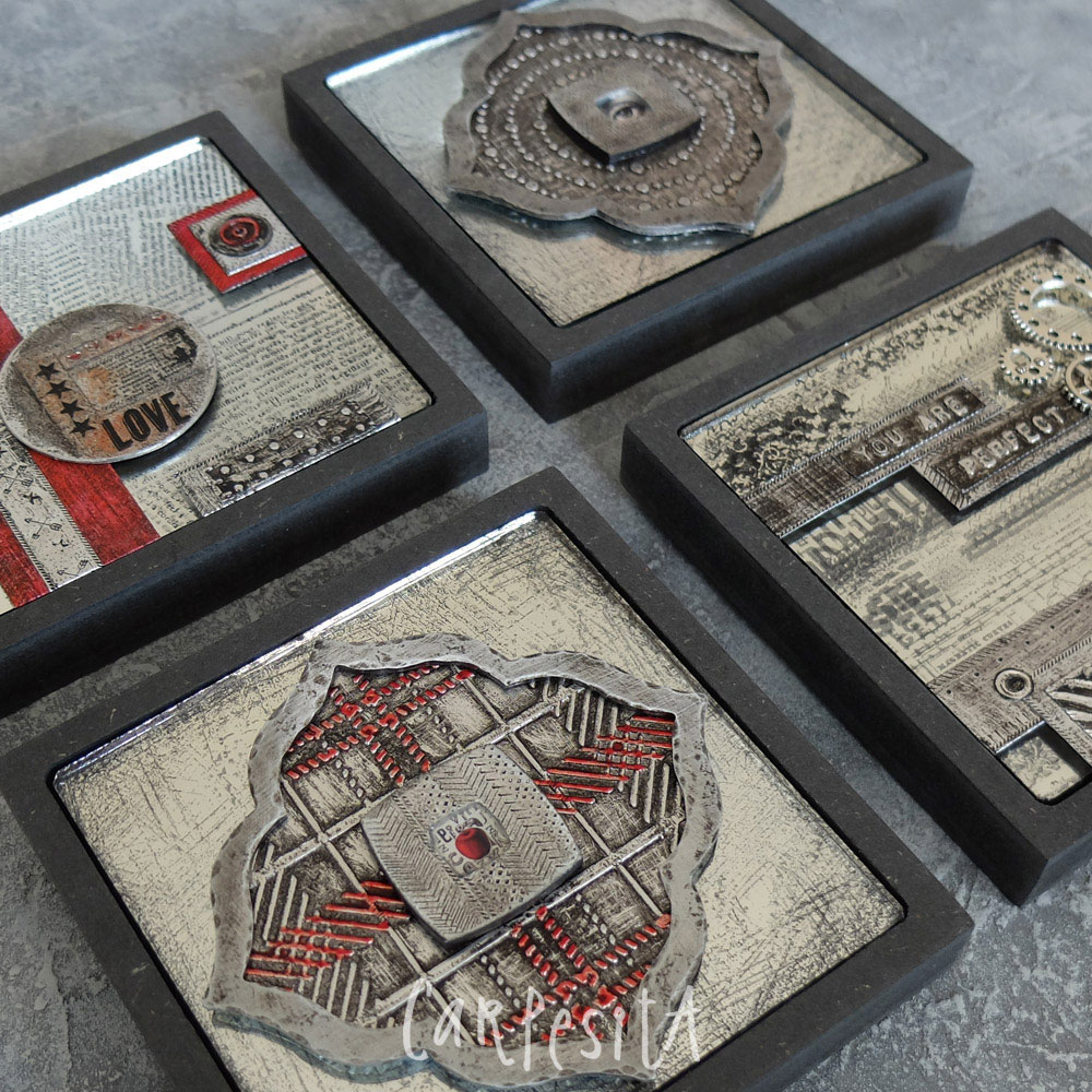 I create one-of-a-kind metal embossed art pieces combined with hand stamped aluminum, copper, mirror and resin. Varies paints (acrylic, pigment, metallic and glass paints) and techniques are used to finish the piece.
